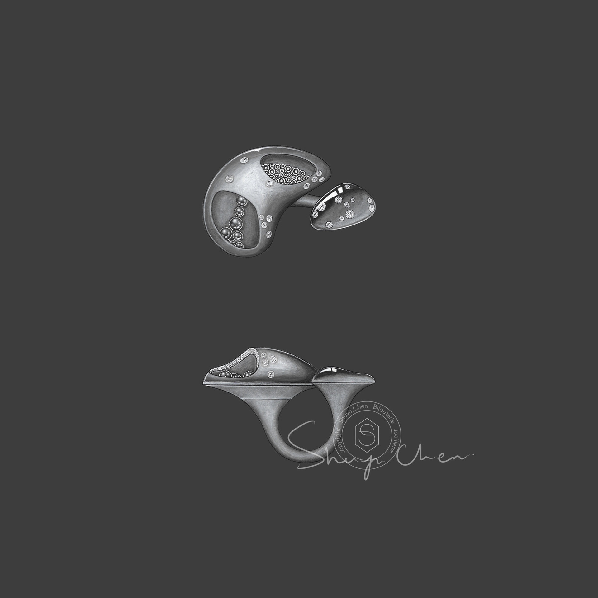 Perle noir - Diamant - Cristal de roche - Or blanc